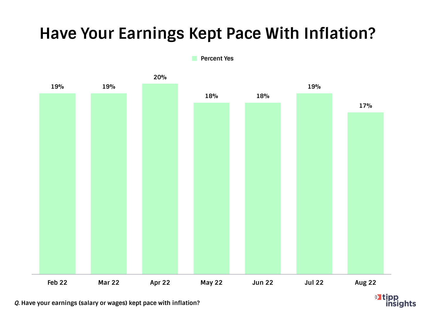 Most respondents (54%) say their wages have not kept pace with inflation. Only one in six (17%) say that it has. The share who said wages had kept pace has hovered in the 17% to 20% range since January 2022.